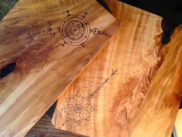 Ess- und Schneidbrettchen, gefertigt aus heimischen Obstbaumgehölzen. Indviduell bearbeitet und gestaltet.