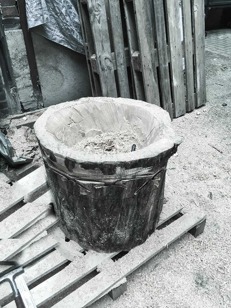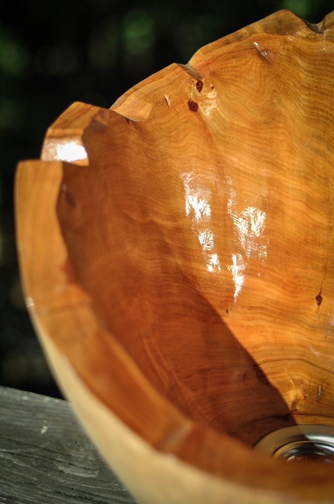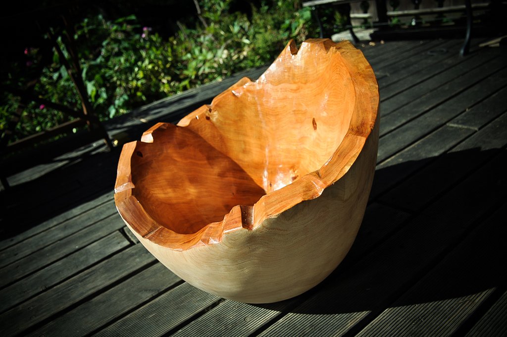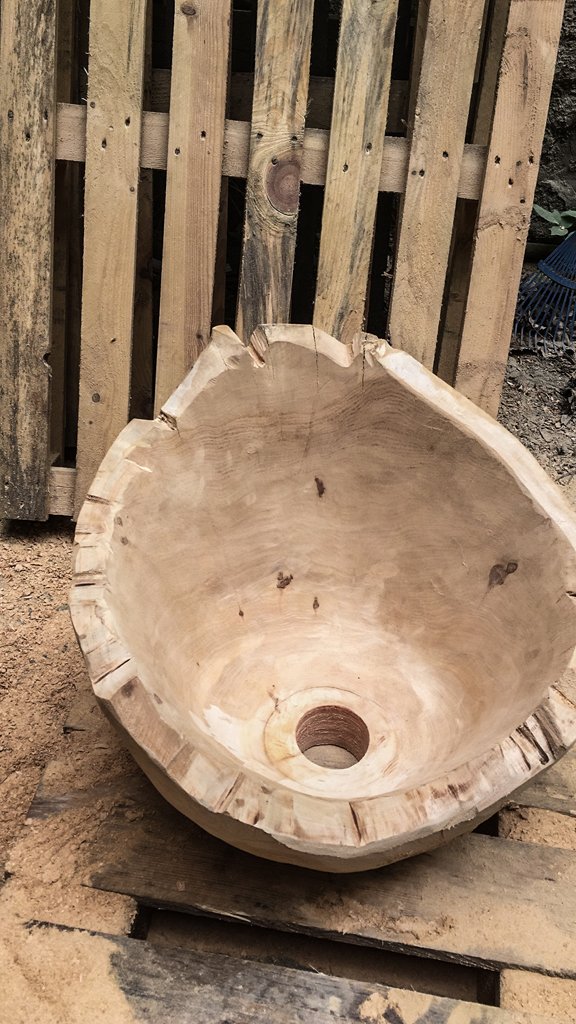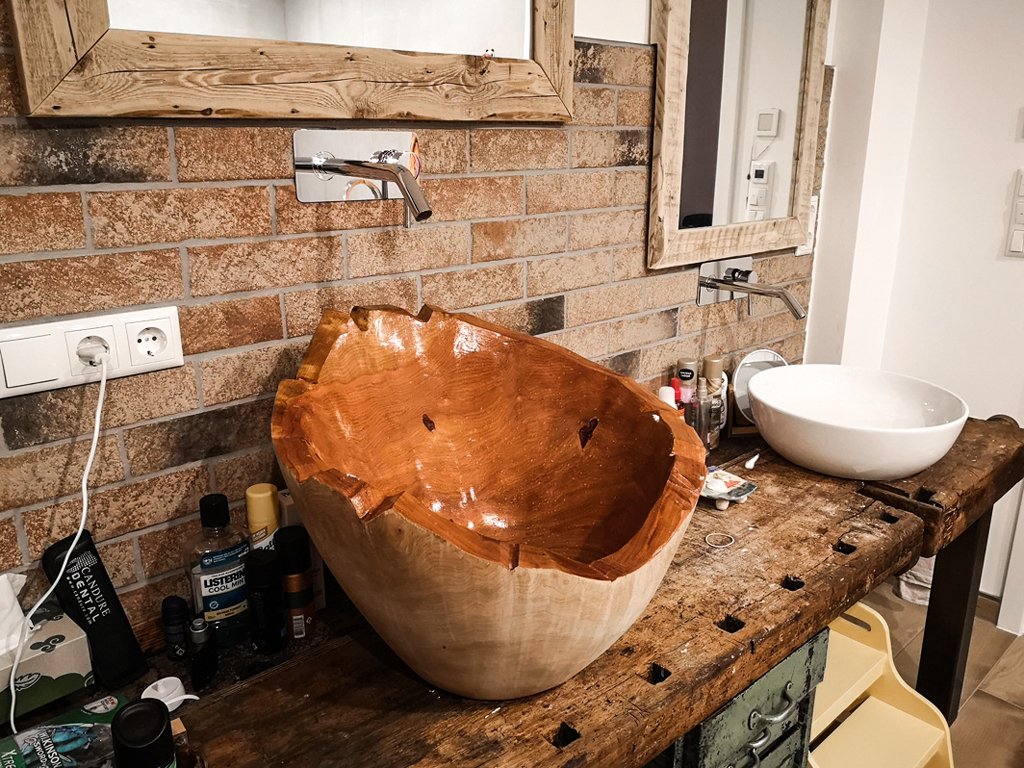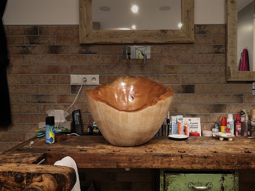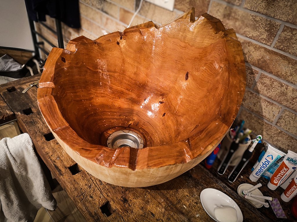 Holzwaschbecken aus einem massiven Stück Eichen-Holz von Hand gefertigt